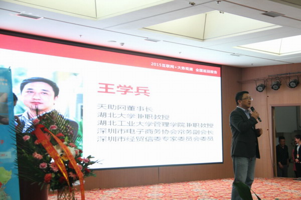 圖為:天助網(wǎng)董事長(zhǎng)王學(xué)兵作主題演講