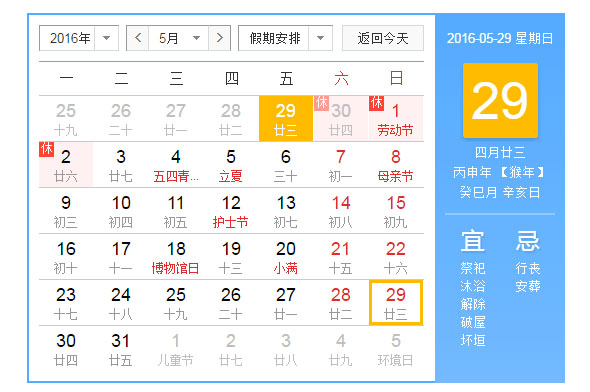 勞動節(jié): 2016年4月30日至5月2日,共3天。5月3日(周一)上班。