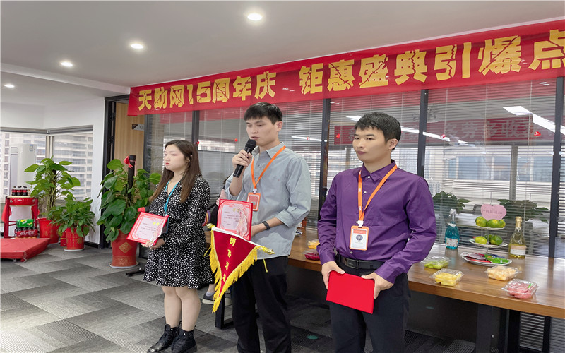然后,我們頒發(fā)優(yōu)秀客服獎(jiǎng),獲獎(jiǎng)?wù)叻謩e為:第一名余文華、第二名馬小紅、第三名周苗。肖總為優(yōu)秀客服一一頒發(fā)獎(jiǎng)勵(lì)、獲獎(jiǎng)?wù)甙l(fā)表獲獎(jiǎng)感言。