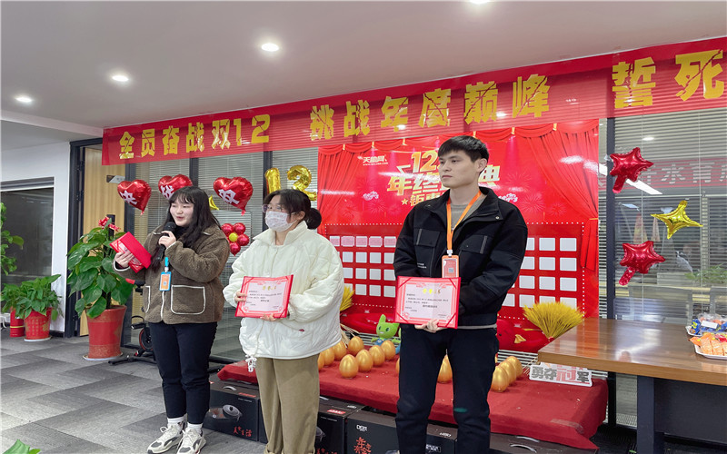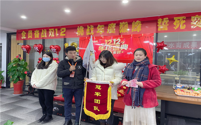 下面進(jìn)入頒獎(jiǎng)環(huán)節(jié)。經(jīng)過(guò)一個(gè)月精彩的角逐,我們的冠軍誕生了,是我們雄鷹隊(duì)的徐輝,亞軍是我們神鋒隊(duì)的張鋮和季軍是我們超越的王東。由肖總頒發(fā)獎(jiǎng)項(xiàng)后,獲獎(jiǎng)?wù)甙l(fā)表了獲獎(jiǎng)感言。