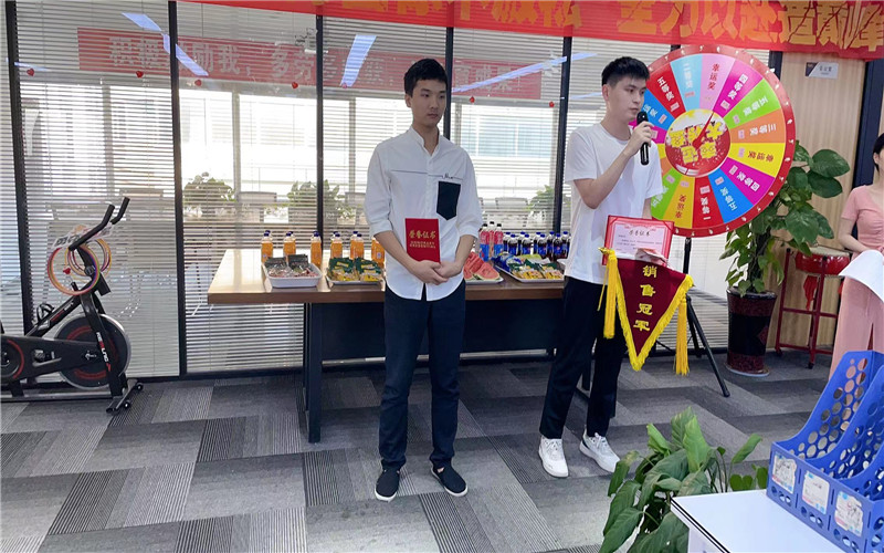 最后,我們頒發(fā)月度前三:張鋮 ,王東;服務(wù)之星:孫晨晨,最佳通話時長:陳迅,新客戶最多:張鋮。肖總為獲獎?wù)哳C發(fā)獎后,獲獎?wù)咭灰话l(fā)表獲獎感言。