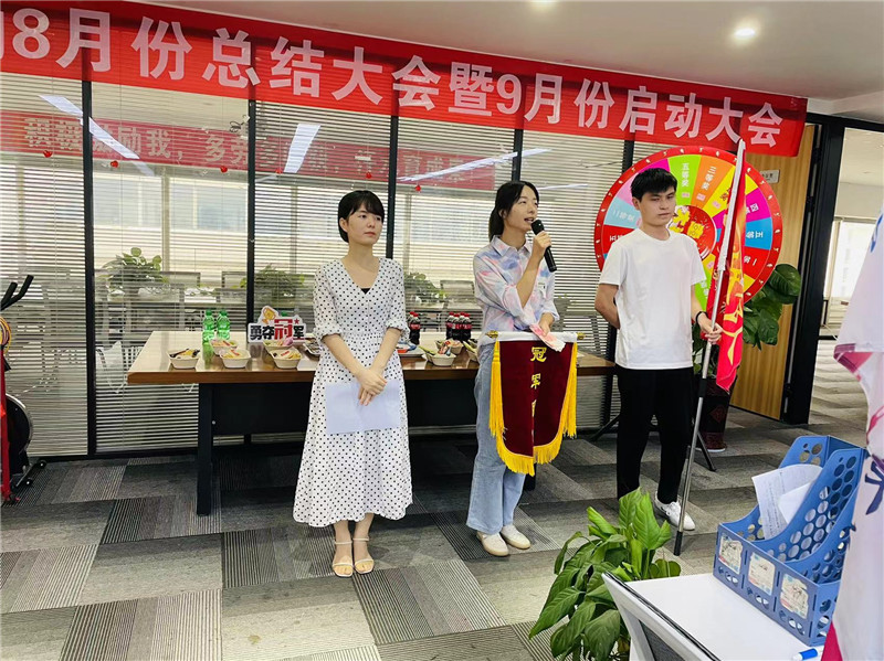 下午五點,我們的啟動大會熱烈開始了,本次活動的主持人是我們美麗的許經(jīng)理。在大會上,肖總進行了7月份的總結(jié)和8月份的規(guī)劃。