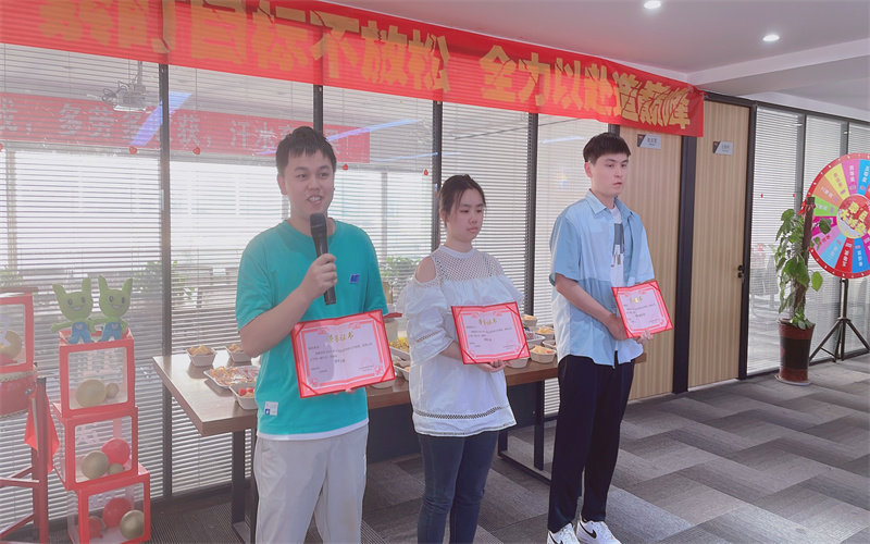 下面進入頒獎環(huán)節(jié)。經(jīng)過一個月精彩的角逐,我們的冠軍誕生了,是我們神鋒隊的張鋮;亞軍是我們超越隊的王東。由肖總頒發(fā)獎項后,獲獎?wù)甙l(fā)表了獲獎感言。