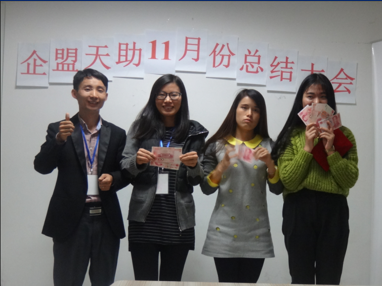 11月3日下午5:30,武漢企盟天助的全體成員召開了10月份的月度總結(jié)大會暨11月份計劃大會。此次大會由我們上個月的月度新秀——吳媛主持。