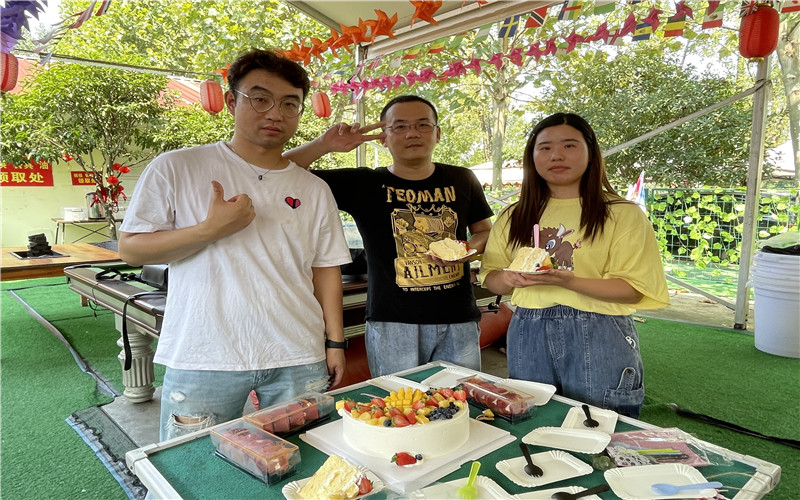 總結(jié)大會(huì)結(jié)束后,企盟天助的員工為壽星們唱生日歌,切生日蛋糕,共祝生日。