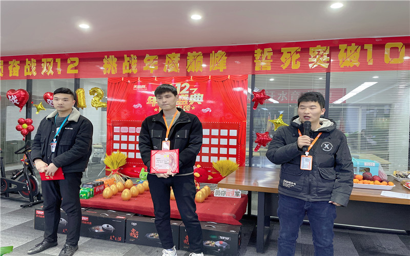 下面進(jìn)入頒獎(jiǎng)環(huán)節(jié)。經(jīng)過(guò)一個(gè)月精彩的角逐,我們的冠軍誕生了,是我們雄鷹隊(duì)的徐輝,亞軍是我們神鋒隊(duì)的張鋮和季軍是我們超越的王東。由肖總頒發(fā)獎(jiǎng)項(xiàng)后,獲獎(jiǎng)?wù)甙l(fā)表了獲獎(jiǎng)感言。