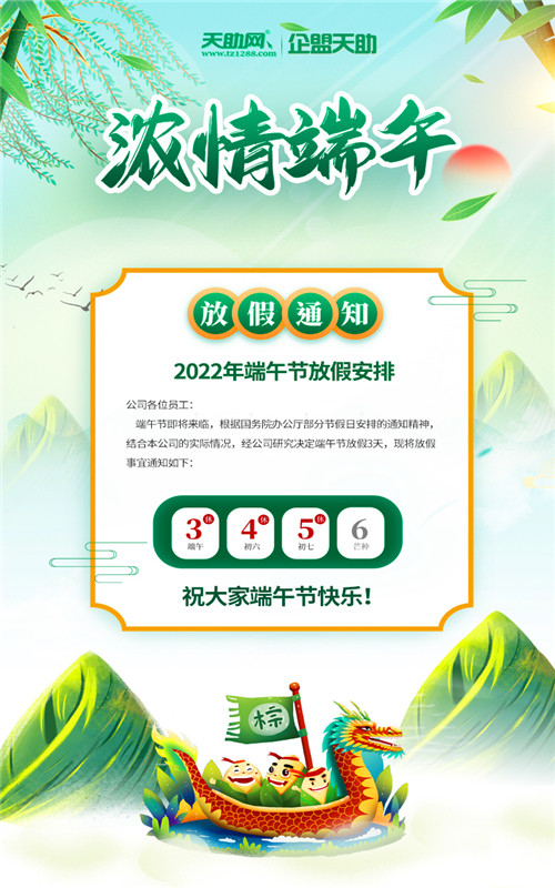 端午節(jié)來臨之際,我謹(jǐn)代表企盟天助祝廣大客戶及企盟天助全體員工節(jié)日快樂,萬事如意!