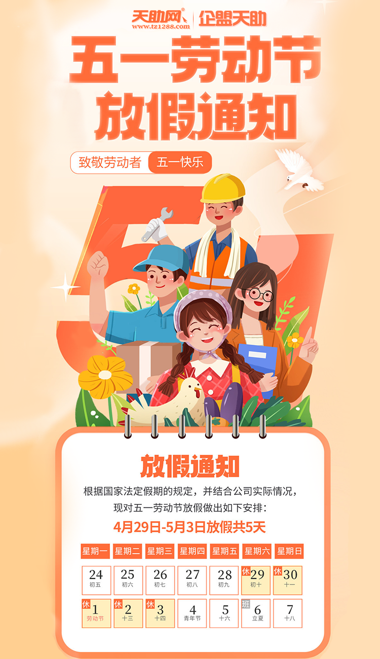 勞動節(jié)來臨之際,我謹(jǐn)代表企盟天助祝廣大客戶及企盟天助全體員工節(jié)日快樂,萬事如意!