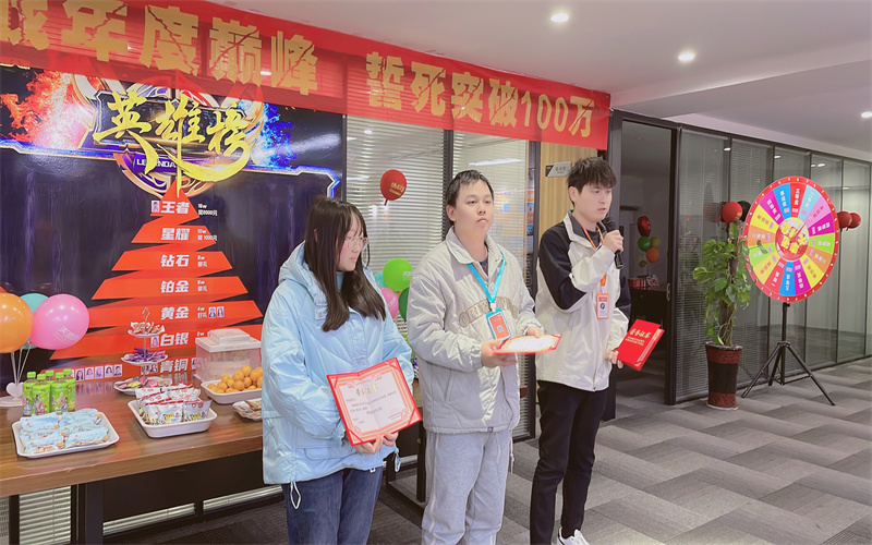 接下來(lái),我們頒發(fā)雙十一英雄榜獎(jiǎng),恭喜張鋮拿到王者等級(jí)獎(jiǎng)品,獎(jiǎng)勵(lì)現(xiàn)金2000元;恭喜神鋒隊(duì)打破去年雙十一記錄,獎(jiǎng)勵(lì)許經(jīng)理現(xiàn)金2000元;