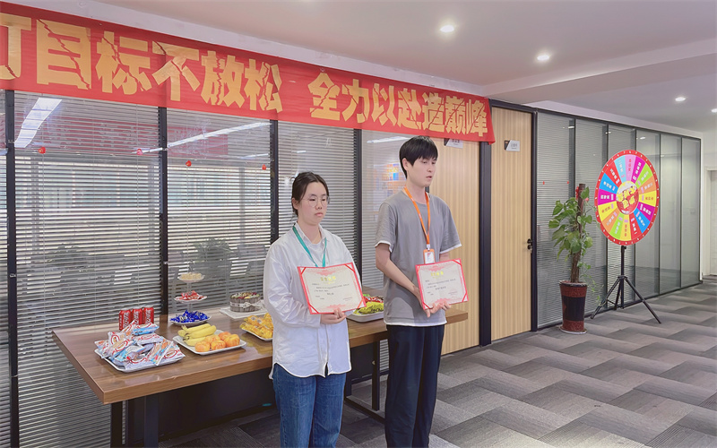 接下來,我們頒發(fā)優(yōu)秀管理獎,獲獎?wù)叻謩e為我們的許經(jīng)理、蔡經(jīng)理。肖總為優(yōu)秀管理一一頒發(fā)獎項后,獲獎經(jīng)理發(fā)表了獲獎感言。