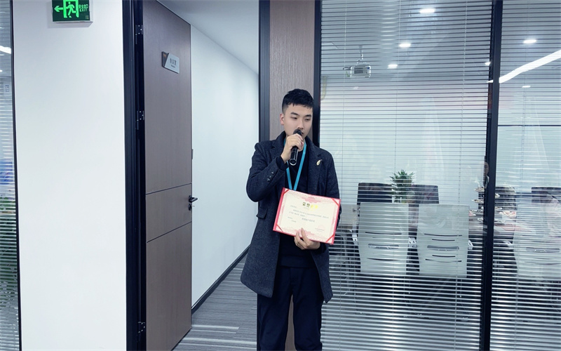 下面進入頒獎環(huán)節(jié)。經(jīng)過一個月精彩的角逐,我們的冠亞軍誕生了,冠軍是我們超越隊的王東。由肖總頒發(fā)獎項后,獲獎者發(fā)表了獲獎感言。