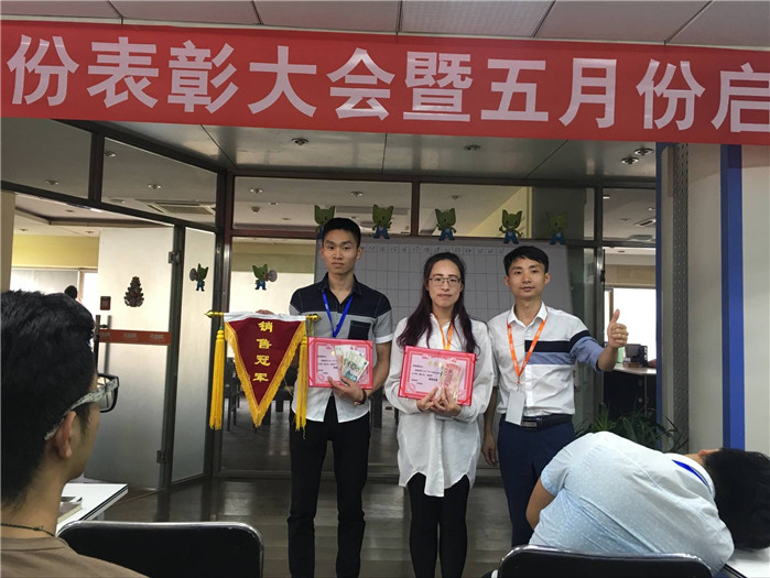我們公司一直都是陰盛陽衰,這次楊學(xué)春得了銷冠,真的是為男生做了一個好榜樣,4月銷售冠軍楊學(xué)春獎金250元,亞軍廖夢甜獎金150元。
