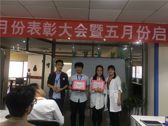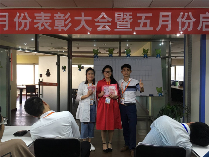 最佳新人:黃強、 電話最多:趙子飛、 新客戶最多:廖夢甜所有的獎都及5月份工作計劃。